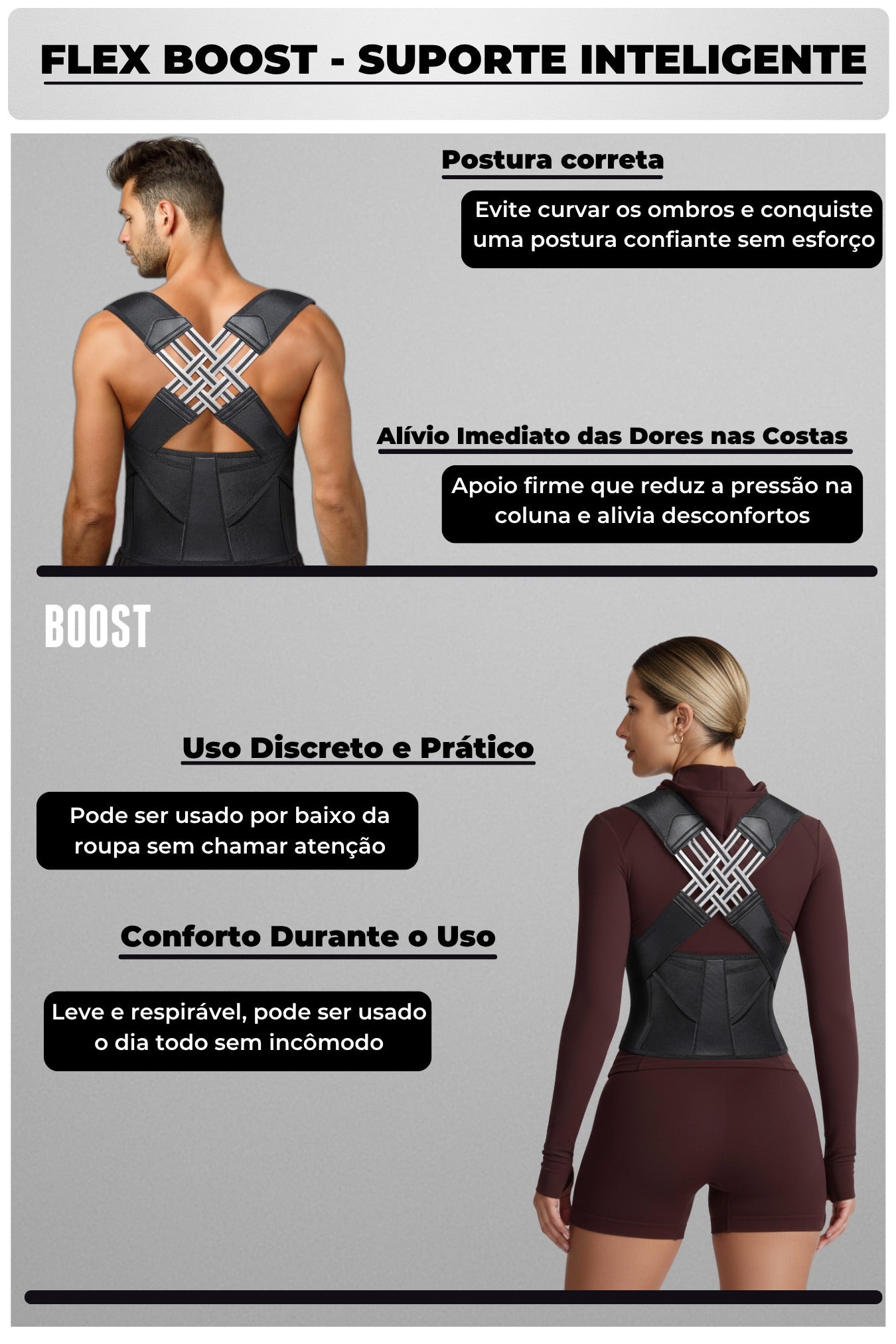 O Flex boost foi desenvolvido para você usar em casa, na academia, na rua ou em qualquer ocasião que você precise de um auxílio em sua postura